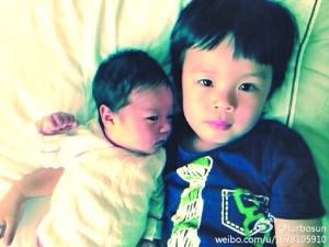 孙俪曝儿女照 坦言:小花妹妹,以后让等哥罩你(图)