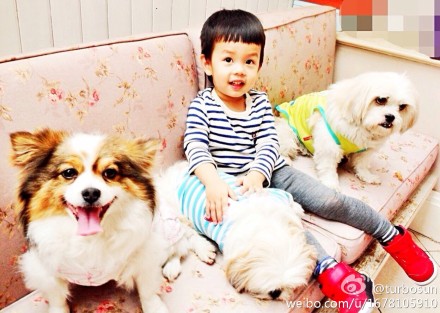 孙俪晒儿子怀抱狗狗照 呼吁抵制狗肉节(组图)