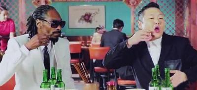 近日,韩国歌手PSY鸟叔与美国歌手SnoopDogg的合作曲《宿醉(Hangover)》于昨日首播,MV同歌名—样,紧紧围绕“吃喝”展开,韩国特有的饮酒文化与美国Hip-Hop混搭,别具—格。MV中出现了蒸拿房、便利店、桌球室和练歌房,还不时出现中国料理和李小龙等中国元素。另外,歌手权志龙和CL李彩琳也分别出现了几秒,被网友戏称为打酱油。