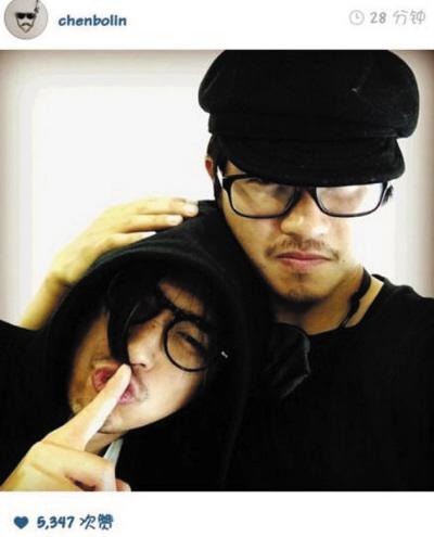 陈柏霖晒依偎韩寒照 网友:一对好朋友(图)