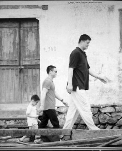 姚明与杨威父子前后行走照曝光 效果搞笑(图)