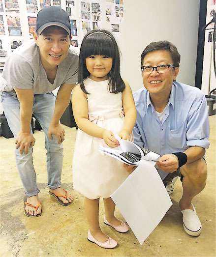前晚李湘在微博分享女儿王诗龄在片场与张家辉、刘伟强及王晶的照片,众人见到王诗龄开心逗她玩。