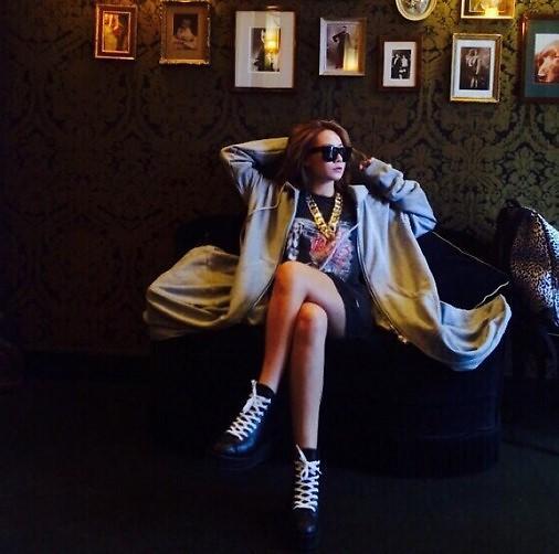 李彩琳于11日凌晨通过Instagram公开了一张照片,她身穿设计独特的卫衣与连衣裙坐在沙发上,一双美腿毕露无遗,再搭配大墨镜,尽显巨星范儿。