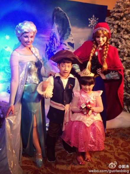 郭涛带爱子游玩 石头扮海盗与王诗龄合照(组图)