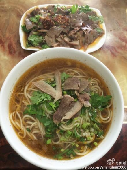张翰晒牛肉面照称好多香菜 网友:杉杉挑菜(图)