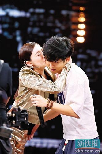 参与互动(0)李小冉“吻”男选手。图片来源:金羊网