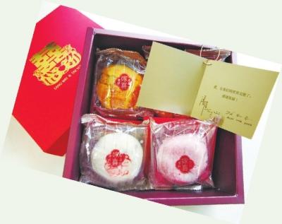日前,汤唯和金泰勇正式结为夫妻,大河君昨天收到了他们送来的喜饼。包装盒上有囍字鸳鸯剪纸图案和一对新人的名字,卡片上的文字是“爱,让我们的世界完整了”。我们也祝福他们永结同心,幸福快乐!(记者 洪波文)