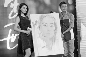 谢霆锋在电影里变身“霸道总裁”买下画着高圆圆的所有画像,首映现场变“痴情男”将画像转送给高。