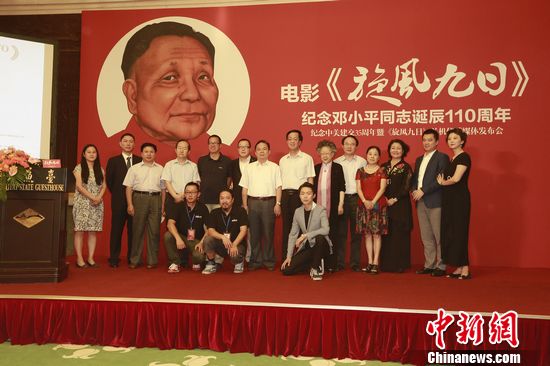 8月28日,大型历史悬疑电影《旋风九日》关机仪式暨纪念邓小平诞辰110周年和访美35周年发布会在京举行。中共中央文献研究室办公厅主任高屹、国家新闻出版广电总局电影局副局长毛羽、该片制片人吕木子、导演傅红星、新东方创始人俞敏洪、金鸡奖影后萨日娜等出席。