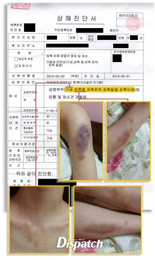 金贤重女友被殴诊断书曝光 全身多处外伤(图)