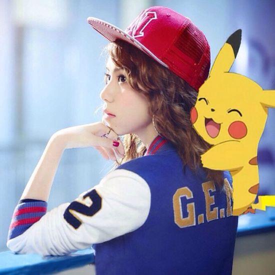 邓紫棋晒与皮卡丘P图合影 穿运动衫目视远方(图)