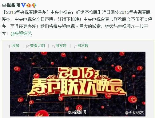 央视否认春晚停办:好饭不怕晚 继续与观众守岁