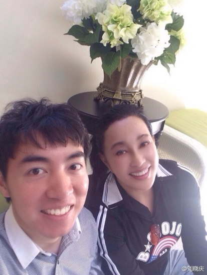 刘晓庆与外甥合照 皮肤白嫩似同龄人(图)