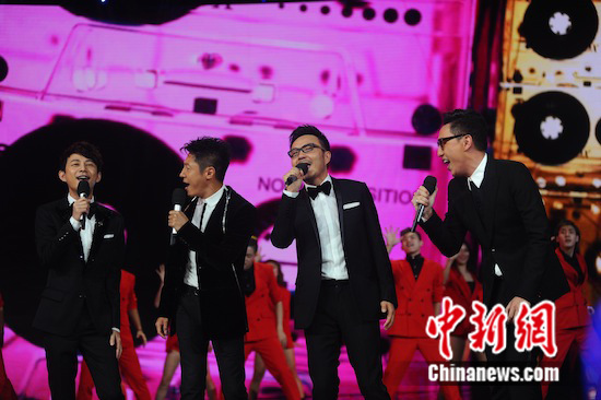 中新网长沙10月10日电(记者 张曦) 10日晚,第十届金鹰电视节开幕式在长沙举行,撒贝宁、汪涵、何炅、华少同台亮相,被封为“主持界的F4”,并一起合唱电视人版的《凡人歌》。