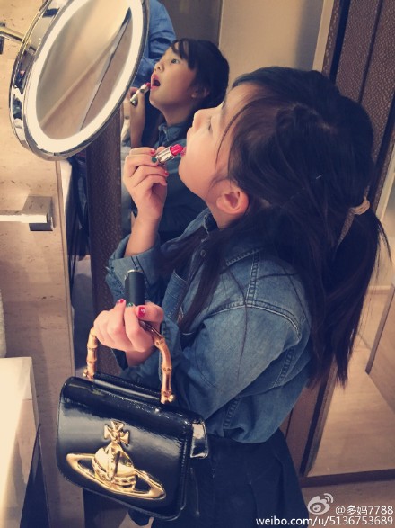 中新网12月30日电 今日下午,黄磊妻子孙莉通过微博晒出一组爱女多多外出游玩的照片,照片中,爱美的多多对着镜子涂口红,回眸一笑喜感十足。