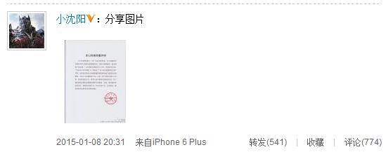 图片来源:小沈阳微博
