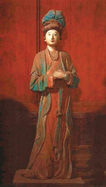 而唐朝穿衣风格是否真的如剧中“波涛汹涌”呢?据一位古代服饰研究者介绍,酥胸半露领口低开的情况并非初唐就已出现,“而是到武周开元前后,出现一些‘淡红衫子掩酥胸’的画”。此外,酥胸半露的装束一般只在特定场合穿着,如在宫廷、闺房中。虽然胸部近景已难再见,但仔细观察的网友,还是没有放过“叉手礼”这一亮点,在远景可见范围内,宫女们的等待姿势其实是依照唐朝图画、出土唐佣所展示,叉手礼不像拱手、作揖那样行完礼手部动作即结束,而是放在胸前继续这一动作,手并不放下,类似后来扪心俯身以示敬的动作,所以又有“叉手不离方寸”之说,方寸即“心”,这里指的是胸部。