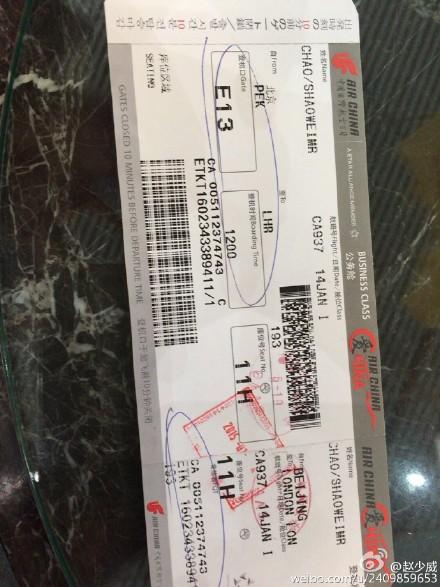 周杰伦与昆凌将于周日在伦敦大婚,昨天,周杰伦完成上海广告拍摄后,快马加鞭现身机场,准备飞往伦敦几日后迎娶昆凌。今天,周董好友、巨室音乐总经理赵少威也晒出前往伦敦的机票,并表示:“准备飞去参加王子与公主的世纪婚礼,普天同庆。”