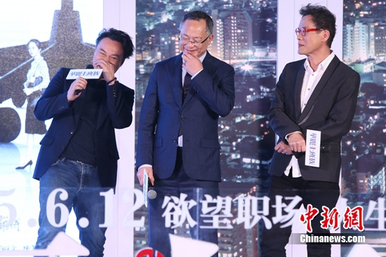 中新网北京4月24日电(记者 张曦) 24日下午,电影《华丽上班族》在北京举行发布会,导演杜琪峰及陈奕迅、罗大佑、王紫逸、郎月婷出席捧场。首度合作的陈奕迅和罗大佑,在采访中惺惺相惜,陈奕迅更直言到了现在的年纪,很适合唱对方的歌。