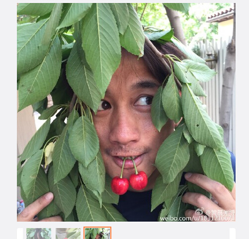 上一页 黄磊头顶树叶嘴叼樱桃造型逗趣 网友:像野人(图)(2) 查看下一页