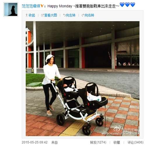 范玮琪推双胞胎外出散步 身形苗条清瘦(图)