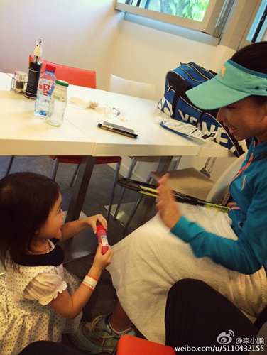中新网6月4日电 今日,前体操奥运冠军李小鹏在微博分享一张看法网时的全家福,照片中,李小鹏夫妇戴着墨镜,笑容灿烂,女儿奥莉则摆出俏皮表情,十分活泼可爱。此外,他还晒出奥莉与网球选手郑洁的合照,并晒出女儿与郑洁的对话:“郑洁阿姨,你拿这个红色笔抹球拍上的是什么东西啊?胶水吗?”