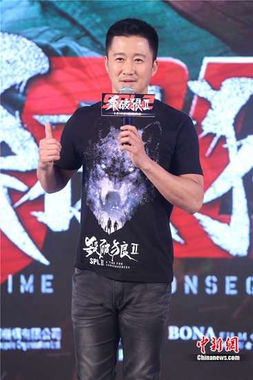 中新网北京6月16日电(记者 张曦) 吴京今天现身北京为新片《杀破狼2》宣传,谈到与妻子谢楠最近录制某档综艺节目,他坦言是为了弥补对方,“我老婆怀孕时,我正在拍《杀破狼2》,没有好好陪她”。另外,吴京还当众示爱大喊:“我有一个好媳妇!”