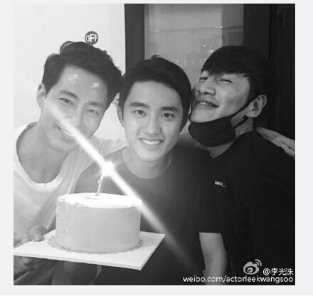 李光洙与赵寅成合影 对方靠在其肩头卖萌(图)