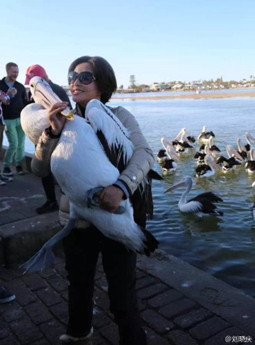 上一页 刘晓庆晒工作照 怀抱鹈鹕亲吻其头部(图)(8)