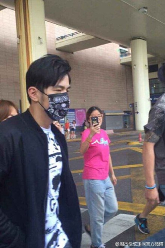 照片中,周杰伦身穿白色上衣搭配黑色外套,戴着口罩现身,获众多歌迷接机围观。