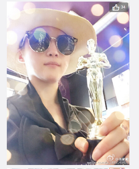 网友看到照片后纷纷转发留言,“久的将来,和陈导一起捧个小金人回来吧”、“女神好美好瘦”、“坐等女神拿下”、“素颜女神”。