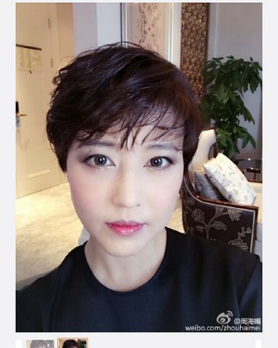 周海媚晒短发自拍 皮肤白皙造型干练(图)
