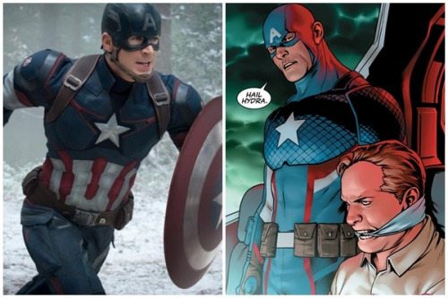 克里斯·埃文斯从2011年开始就在电影《美国队长》饰演主角斯蒂夫·罗杰斯,温和有礼、充满正气的形象受到影迷喜爱。漫画最新一期的版本于25日释出,在最后一格漫画中,美国队长竟然说出“九头蛇万岁(Hail Hydra)”,并曝光真实身分其实是纳粹阵营“九头蛇”沉潜在神盾局里的卧底,得知演出角色翻黑,他26日在推特PO文表示:“九头蛇!?说那不是真的!”显然相当惊讶。