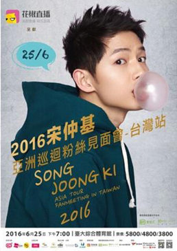 6月25日,“2016宋仲基亚洲巡演粉丝见面会”台湾站见面会即将举行。花椒直播不仅全程独家直播,还特邀两位人气超女作主播,为粉丝全方位解密宋仲基台湾见面会的前台幕后。