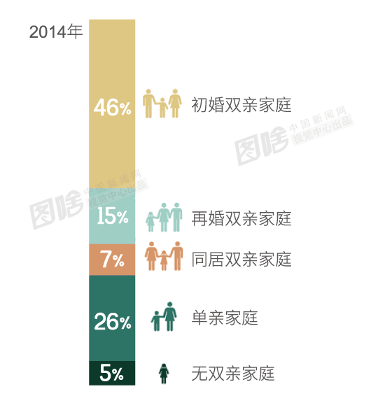从2014年的数据可以看出,美国的单亲家庭和再婚双亲家庭都不在少数,甚至还有“同居双亲家庭”这一类别。值得一提的是,朱莉与皮特在2014年结婚前也属于这一类别。