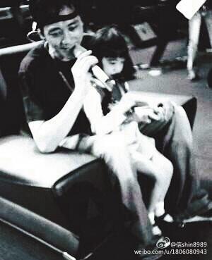 在信最近公开的一张亲子照中,女儿遗传了老爸人高腿长的优点。