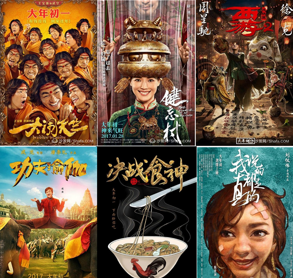 这其中不乏大制作名导演和明星云集的作品。《功夫瑜伽》的主演是成龙、导演是唐季礼;《西游伏妖篇》由周星驰监制、徐克执导;《大闹天竺》算是王宝强导演的处女作;《乘风破浪》的导演是知名作家韩寒,主演则由人气颇旺的赵丽颖、彭于晏和邓超担当。