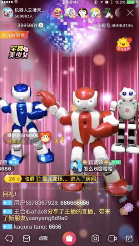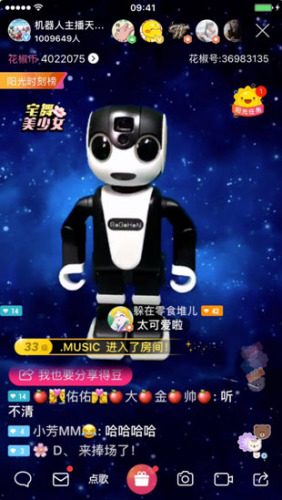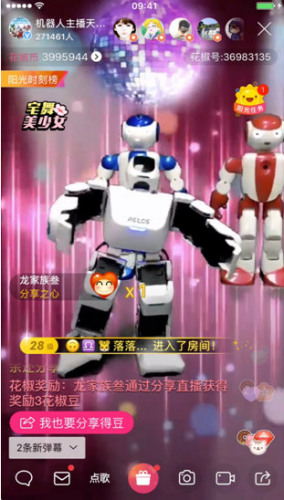 中新网3月24日电 继花椒直播推出机器人直播首秀火爆网络后,3月22日,机器人主播图图与另外8名机器人组成首个机器人主播天团“TLBOYS”亮相花椒直播出道。直播中,成员喊麦、斗舞大秀才艺,上演了一场机器人版“吐槽大会”吐槽功力堪比曹云金。