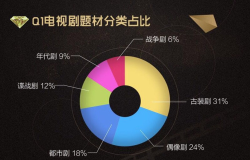 从Q1电视剧题材分类占比情况看,《三生三世十里桃花》已于3月1日收官大捷,但余温犹在,催熟了一众古装剧热播,延续了自2015、2016年以来《步步惊心》、《芈月传》、《武媚娘传奇》的古装剧收视传奇。以《因为遇见你》《爱来的刚好》《那片星空那片海》为代表的都市剧和偶像剧的热播则凸显了IP内容定位和迎合年轻用户群体的观看偏好带来的好处。
