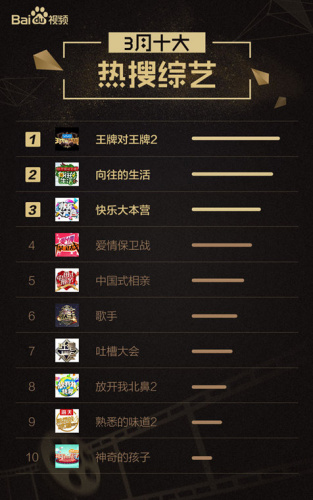 近日,百度视频发布了《2017年3月网络视频大数据报告》,基于百度视频的海量用户,以及日均上亿次的视频搜索行为进行大数据统计和分析,就3月表现抢眼的电视剧、综艺、电影、动漫、明星、娱乐事件等内容进行了深度解读。与2月份报告相比,本月有更多新锐内容和题材表现不俗、强势登榜,让我们一睹为快!