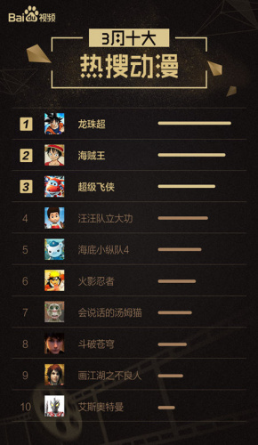 3月,注定是动漫经典作品的春天。龙珠正统续集《龙珠超》回归榜单第一名的宝座,动漫经典《海贼王》《火影忍者》持续热播;颇感意外的是《熊出没》跌出TOP10榜单;BBC热播海洋探险动画《海底小纵队4》跃上榜单TOP5,热播黑马《汪汪队立大功》月度播放碾压《火影忍者》。《海底小纵队》和《汪汪队立大功》两部学龄前动漫的热播,显现“幼儿潮”热度犹在。而根据影视周边数据表现看,《海底小纵队4》近期还催热了海洋馆、水族公园等衍生经济。值得一提的是,国漫佳作《画江湖之不良人》作为漫画IP,还带火了同名网剧,真人加动画在虚实之间给观众全新的体验。动漫周边的一系列动作,也从侧面反映了动漫IP衍生产业链的逐渐成熟。
