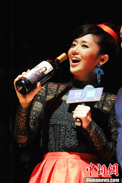 日本女星苍井空红裙亮相 秀中文表情娇羞