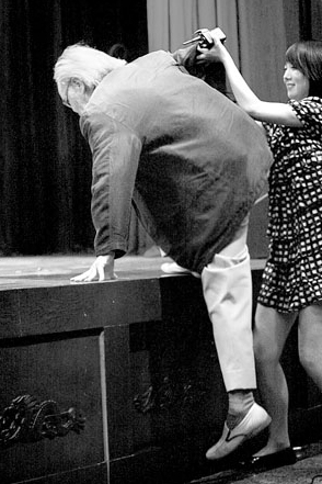 老爷子情绪更加高涨,起身就往前走,没几步就来到了舞台前。“哎哟,您慢点!来,走这边……”一名工作人员赶紧上前,指着舞台一侧的台阶引导。