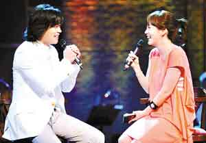 韩国人气女星金正恩转型当起音乐节目主持人,将通过音乐访谈节目《金正恩的巧克力》正式开始主持人生涯,之前在记者会上就有不少记者关心其男友李瑞镇是否会以嘉宾身份出现,果然日前录影第一集时李瑞镇身穿白色西装出现在录制现场,还表白说金正恩就是自己的巧克力,二人深情凝望的眼神让台下观众羡慕不已。