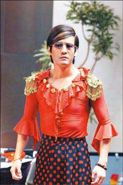 中新网1月7日电 日本型男帅哥唐泽寿明装娘穿着红色薄纱激凸扮演经纪人,腹部赘肉甚至还若隐若现令师奶粉丝看了都傻眼,小田切让更是搞笑戴上麋鹿头套装秃头,两人都甘愿为了日本导演三谷幸喜扮丑来博君一笑。