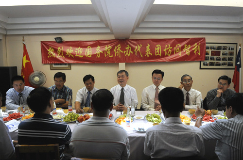 中新网2月10日电 2月5日,“文化中国 四海同春”南美艺术团团长,国务院侨办党组成员熊昌良先后走访了智利温州商会、江苏商会和中华会馆,考察了圣地亚哥中国商贸城,并与当地侨界举行座谈会,了解侨情,倾听当地侨胞对侨务工作的意见和建议。
