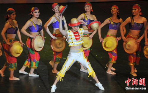 图为孟雷等表演的帽子戏法。中新社发 张炜 摄