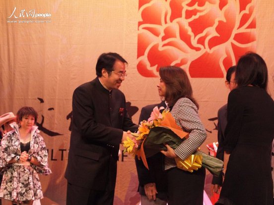 演出结束后,国侨办副主任许又声与哥斯达黎加总统劳拉·钦奇利亚与演员合影。