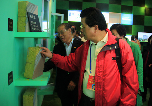 侨领认真观看规划馆内的物品。