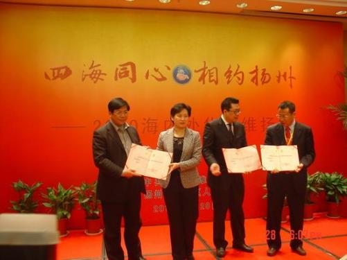 会上,维扬区长杨蓉代表区政府,分别与香港南安公会、上海市华商会、浙江省侨商会签订了合作协议书,并向香港南安公会会长叶益强、上海市华商会会长顾莹、扬州籍海归博士朱留存颁发了维扬区经济顾问证书。